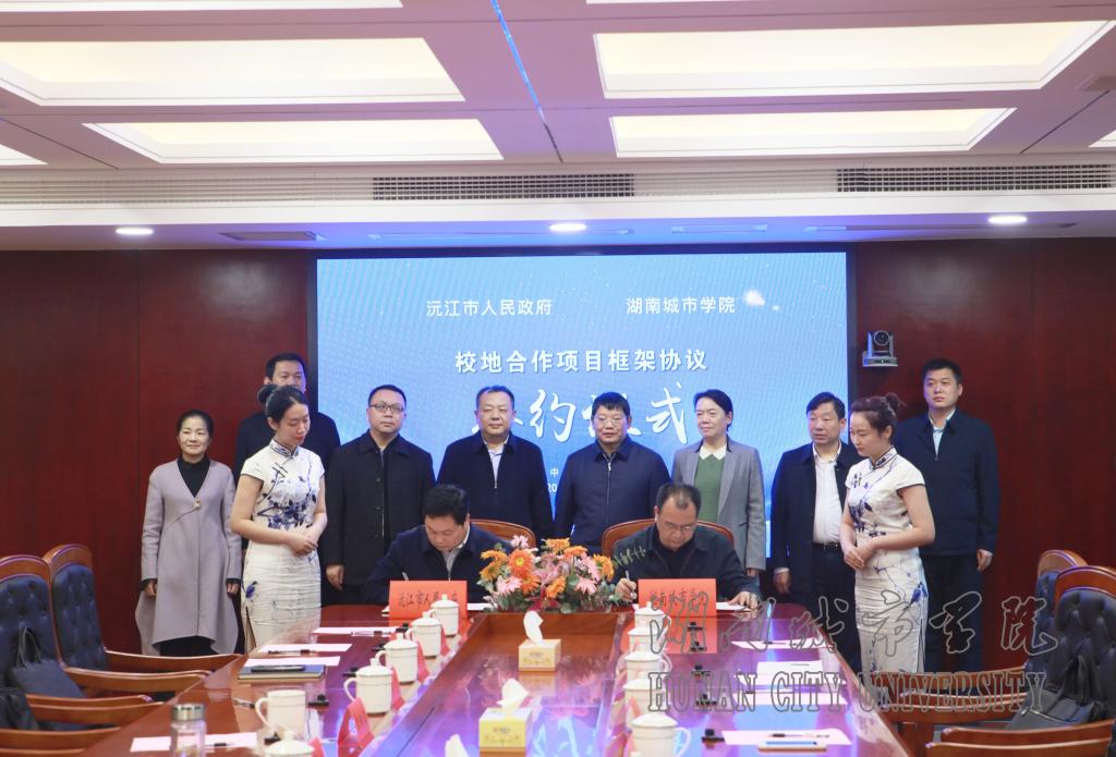 本网讯(记者 文彦波) 2020年10月16日下午,我校与沅江市人民政府校地合作框架协议签字仪式在沅江市市政府会议中心举行。党委书记罗成翼,沅江市委书记黄育文出席仪式并致辞,党委副书记、校长李建奇,沅江市委副书记、市长杨智勇代表双方签署了校地合作框架协议。