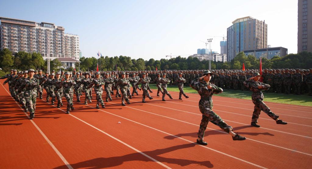党委副书记、校长汤放华宣布军训成果汇报表演开始。