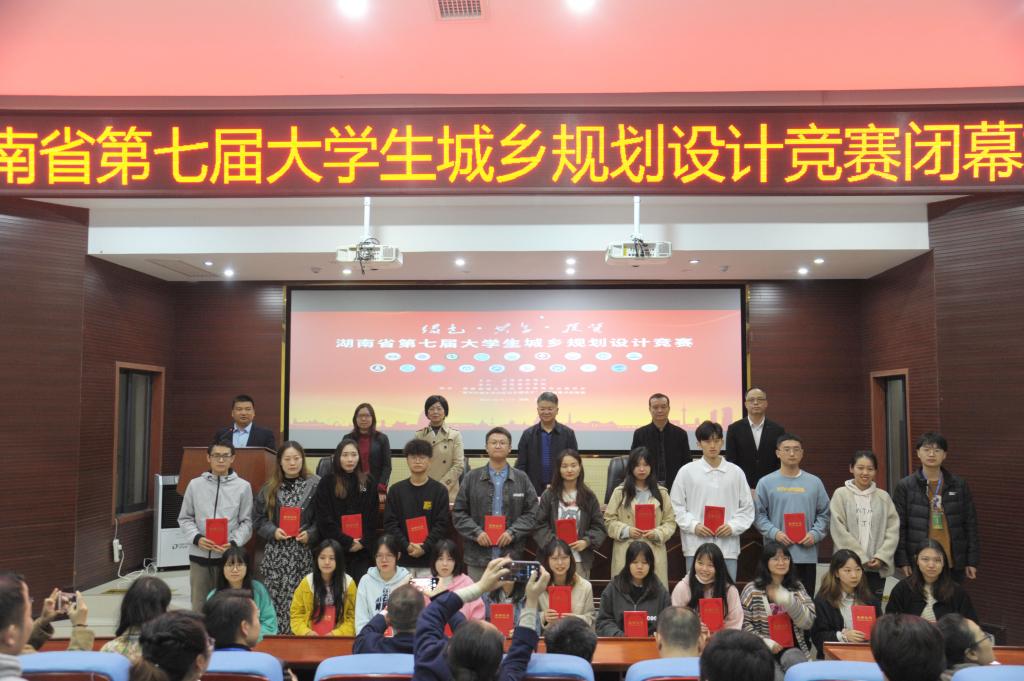 17日上午,此次大赛的闭幕式在建规楼121召开,湖南省城乡规划学会理事长、校长汤放华,副校长雷存喜以及教务处相关负责人出席。汤放华在讲话中指出,要正确认识我们所处的伟大时代和规划设计师所承担的使命,鼓励同学们学好本领,在新型城镇化和乡村振兴中发挥专业特长,把生态文明价值理念贯彻到每一寸土地规划及设计中去,为人民幸福生活创造更加美好的人居环境。随后,与会领导为获奖单位和获奖者颁奖。