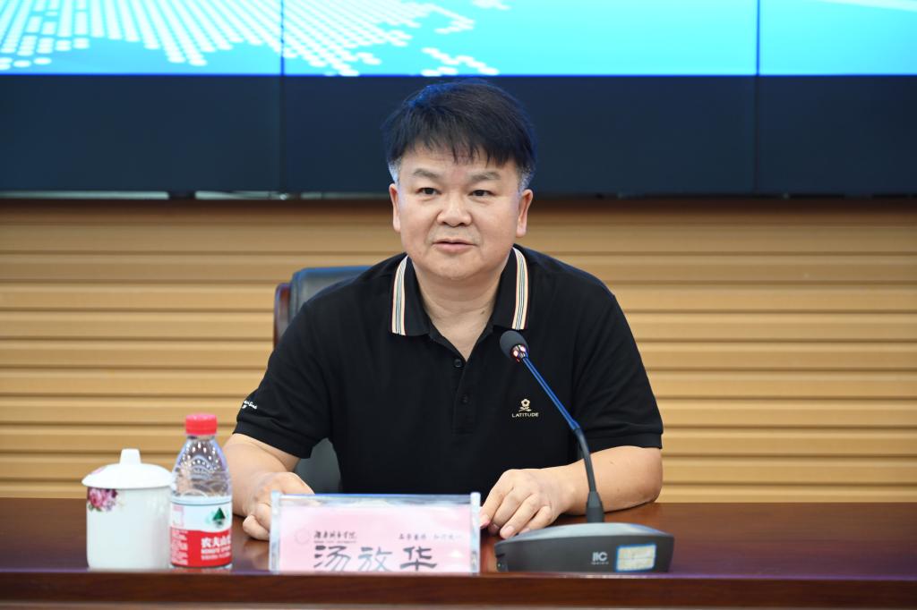 汤放华对宣讲团一行的到来表示热烈欢迎,并介绍了学校的基本情况以及近年来在科技方面取得的成绩。他强调,科学家精神是科技工作者在长期科学实践中积累的宝贵精神财富,是胸怀祖国、服务人民的爱国精神,是勇攀高峰、敢为人先的创新精神,是追求真理、严谨治学的求实精神,是淡泊名利、潜心研究的奉献精神,是集智攻关、团结协作的协同精神,是甘为人梯、奖掖后进的育人精神。汤放华要求同学们认真学习科学家精神,恪守科学道德,树立远大志向和明确奋斗目标,将学习和国家的命运连接起来,把握现在,争创美好未来。掌握知识,学好技能,为国家作贡献。