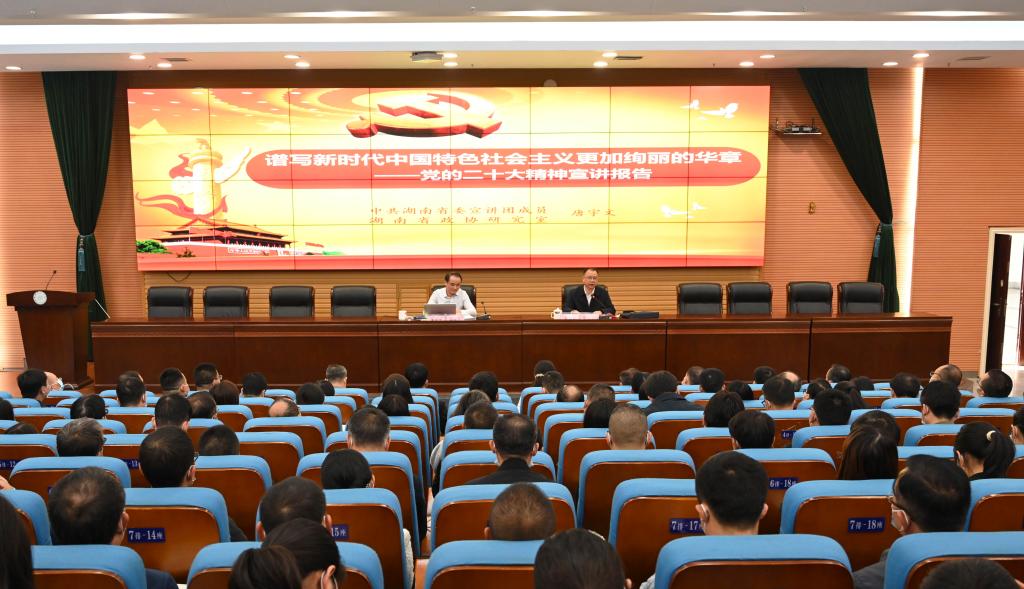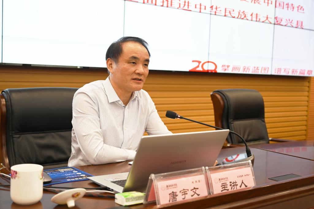 唐宇文从全面领会党的二十大的主题及主要成果、深刻认识新时代十年的伟大变革及其里程碑意义、不断开辟马克思主义中国化时代化新境界、牢牢把握新时代新征程中国共产党的使命任务、贯彻落实新时代新征程的战略部署、用新的伟大奋斗创造新的伟业等方面,对党的二十大精神进行了系统宣讲和深入阐释。