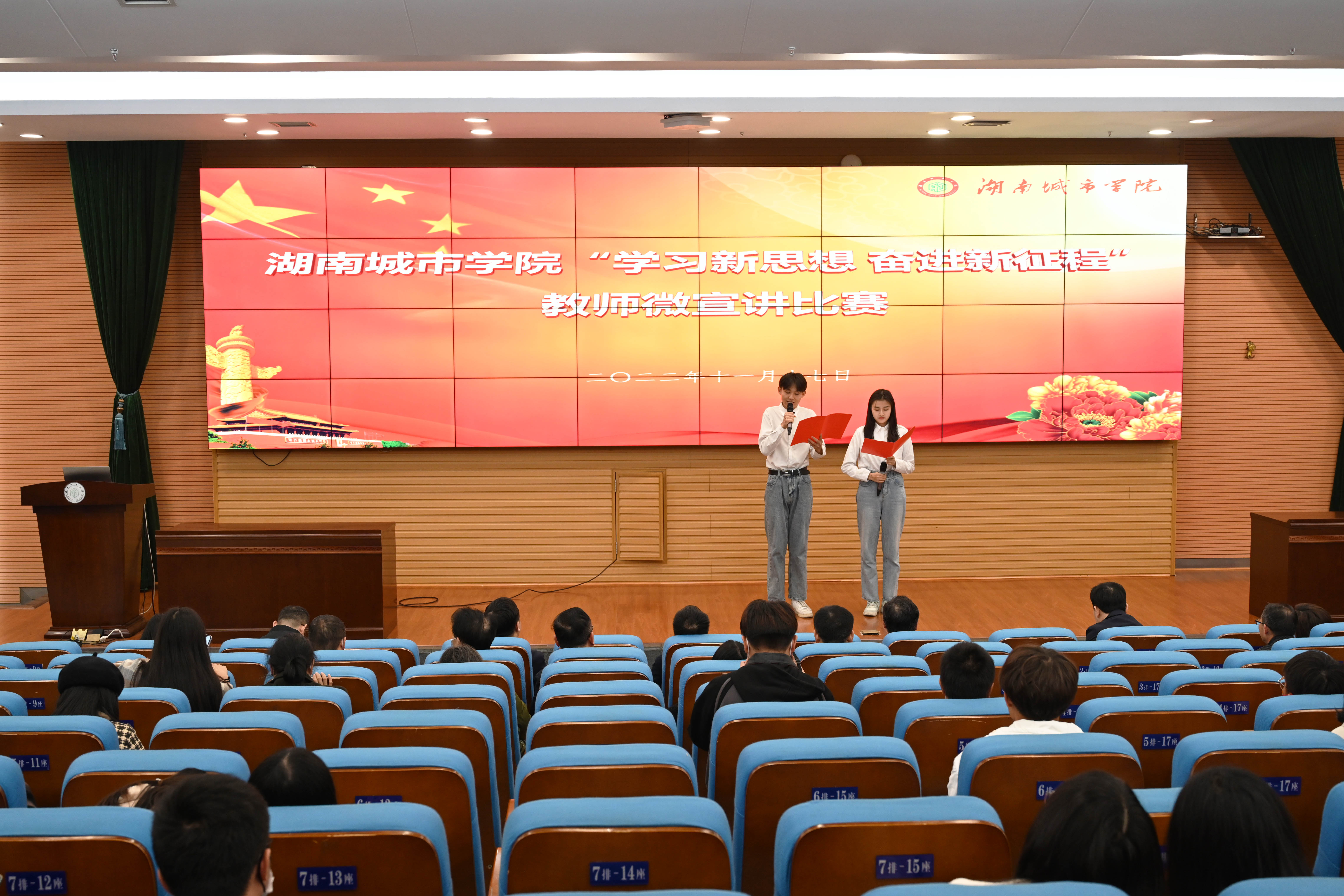 本网讯(通讯员 周文娟)“党的二十大开启了以中国式现代化全面推进中华民族伟大复兴的新征程,中国式的现代化需要现代化的人才做支撑……” 11月17日,易游在线平台“学习新思想,奋进新征程”教师微宣讲比赛在图书馆报告厅举行。来自各二级单位的18位参赛选手们围绕党的二十大报告,从党的二十大的历史地位与重大意义、党的二十大精神等方面,用“小故事”诠释“大道理”,将党的创新理论送到师生的心坎上。党委副书记何旭娟,副校长袁志成,党委委员、组织部部长吕贤军出席。
