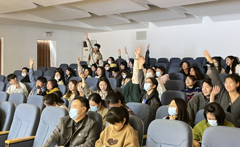 本网讯(通讯员 纪沛琳)“党的二十大的主题是什么?”“党的十八大以来,我们经历的三件大事是什么?”“什么是我们立党立国、兴党兴国的根本指导思想?”……11月24日下午,音乐楼206气氛热烈,一场学习二十大精神的知识抢答赛正火热举行,音乐与舞蹈学院的师生们你来我往,三十个答题认领一空。